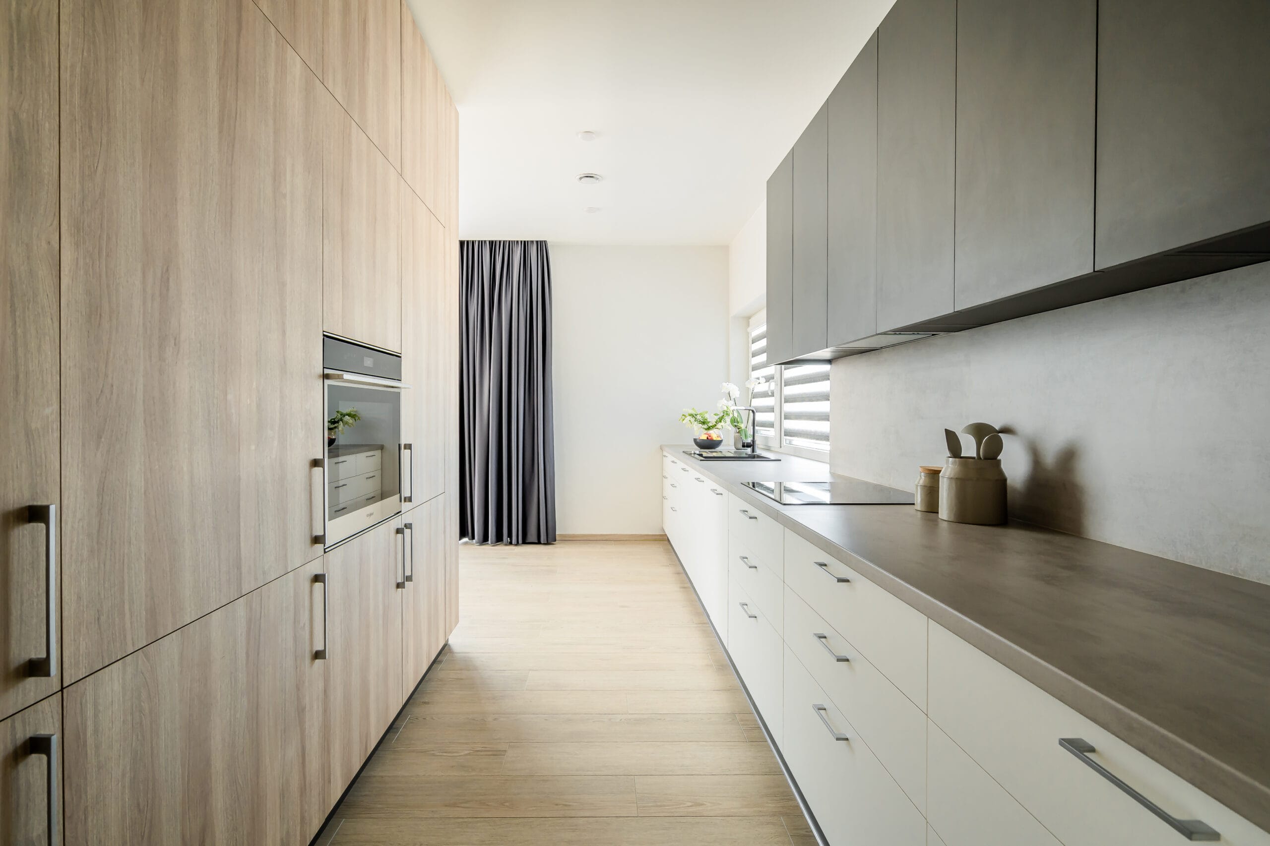 Dviejų kambarių buto interjero projektas parengtas iš esmės perplanuojant naujos statybos erdves, siekiant maksimaliai patogaus kasdienio naudojimo.