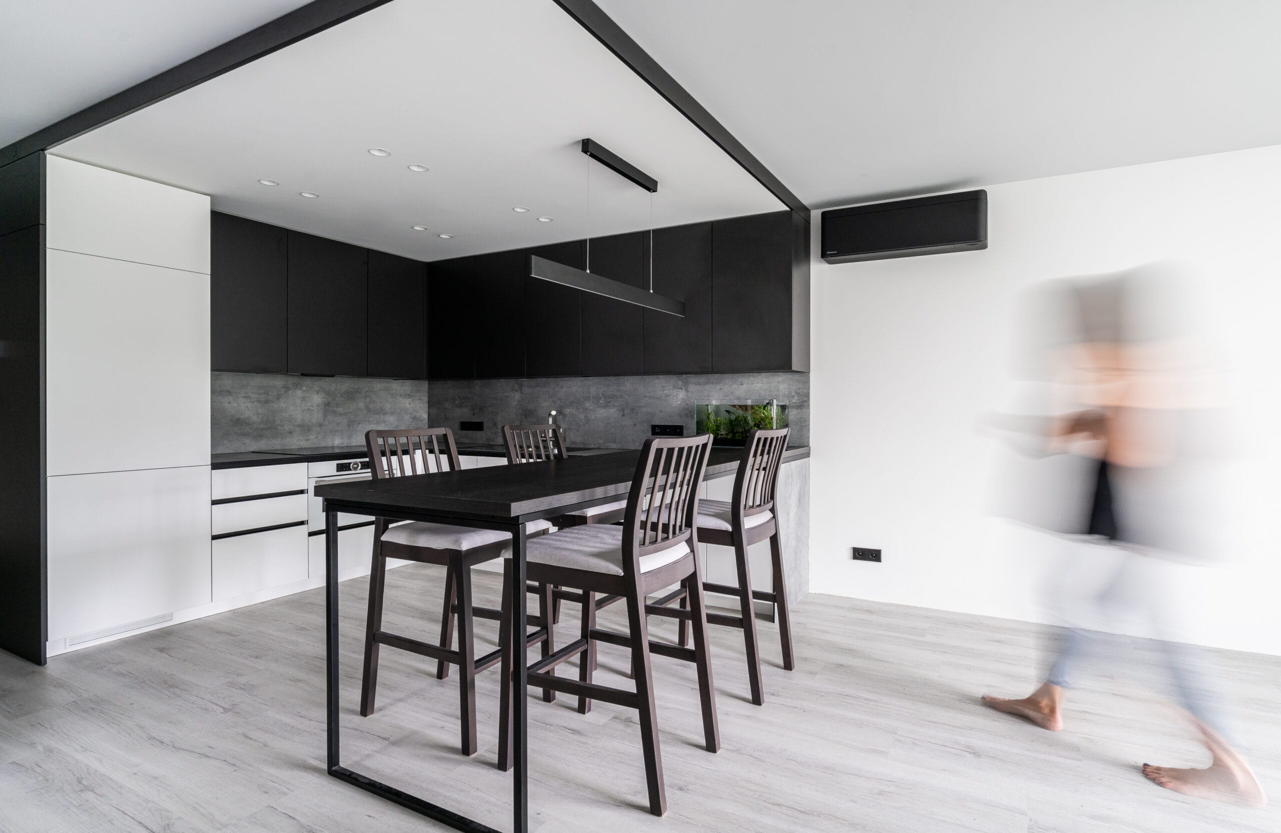 Dviejų aukštų gyvenamojo namo interjero projektas sukurtas orientuojantis į ilgaamžiškumą, funkciją ir estetinę pusiausvyrą pritaikytą kasdieniam šeimos gyvenimui.