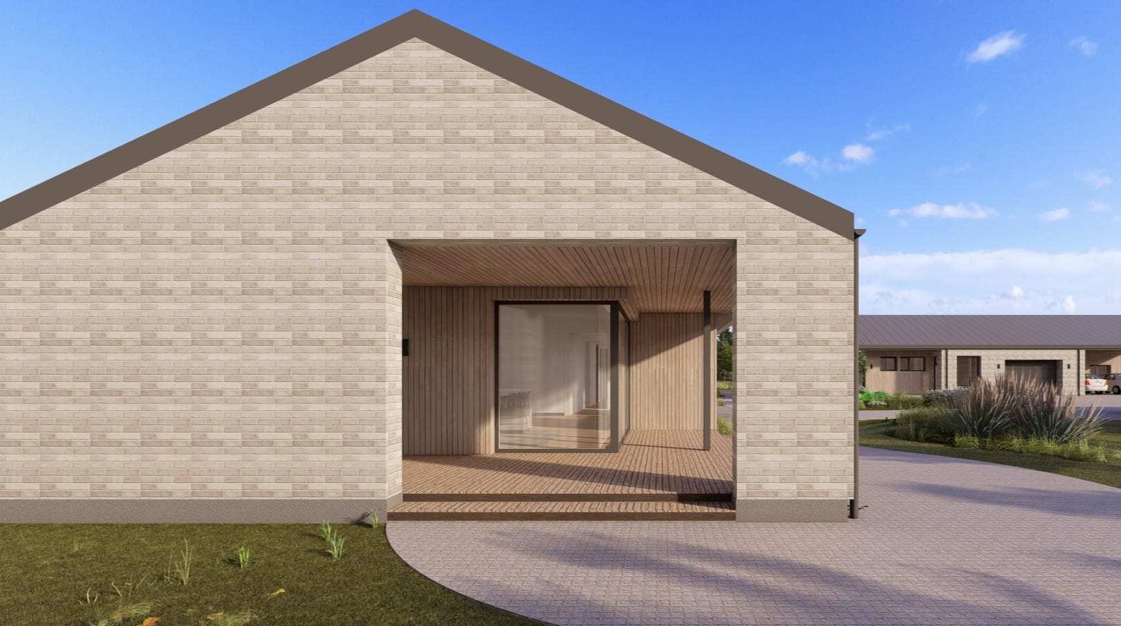 Fasadų apdailai pasirinktas klinkeris, derinamas su medžio intarpais, suteikiantis architektūrai ilgaamžiškumo ir subtilios tekstūrinės įvairovės. Medžiagų derinys pabrėžia pastatų santūrų charakterį ir kartu įneša šilumos į bendrą architektūrinę išraišką.