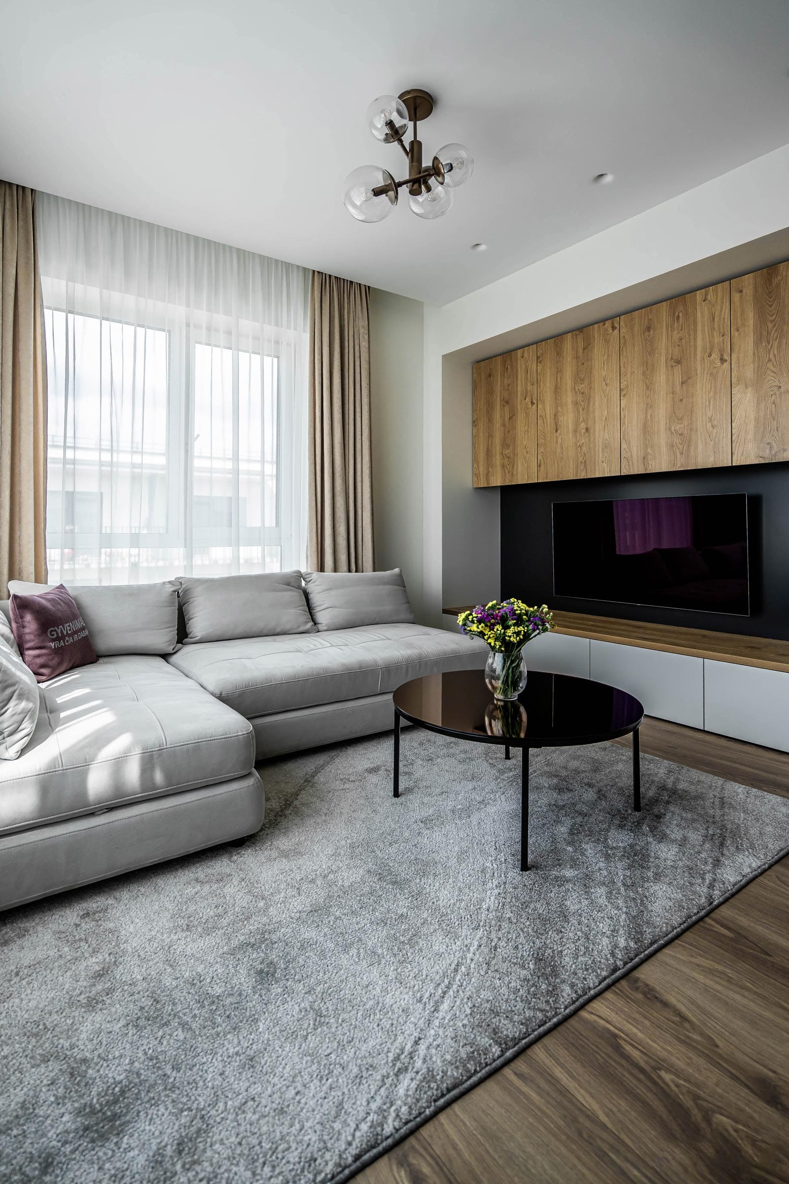 Interjero sprendiniai orientuoti į ilgalaikį naudojimą, išgrynintas formas ir aiškią funkciją, užtikrinant, kad buto interjeras išliktų patogus, funkcionalus ir aktualus laikui bėgant.