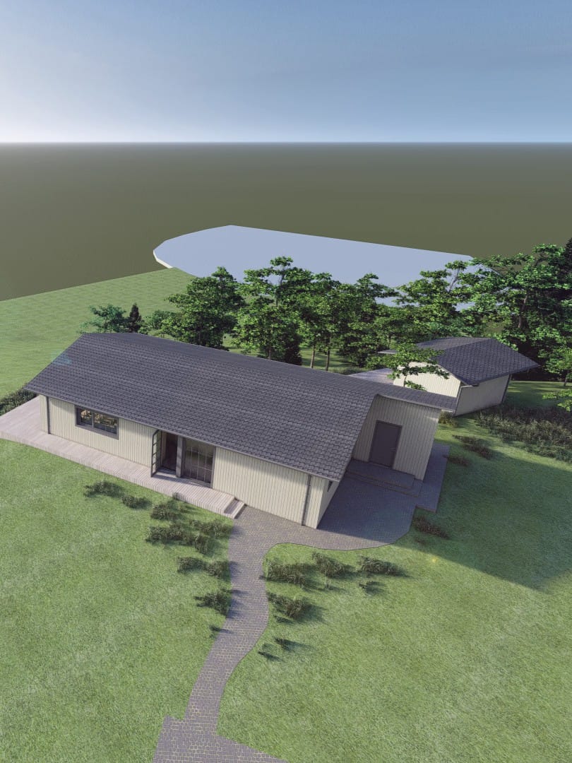 Šalia poilsio namo suprojektuota atskira pirtis, funkciškai papildanti pagrindinio pastato naudojimą ir išplečianti poilsio scenarijus skirtingais metų laikais. Abu pastatai sprendžiami kaip vientisa architektūrinė visuma, orientuota į ramų, komfortišką buvimą gamtoje.