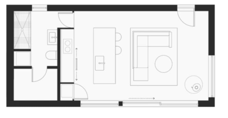 • Svetainė ir virtuvė vienoje erdvėje;